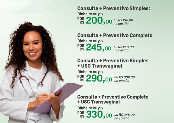Consulta de Ginecologia + Preventivo Completo + USG Transvaginal